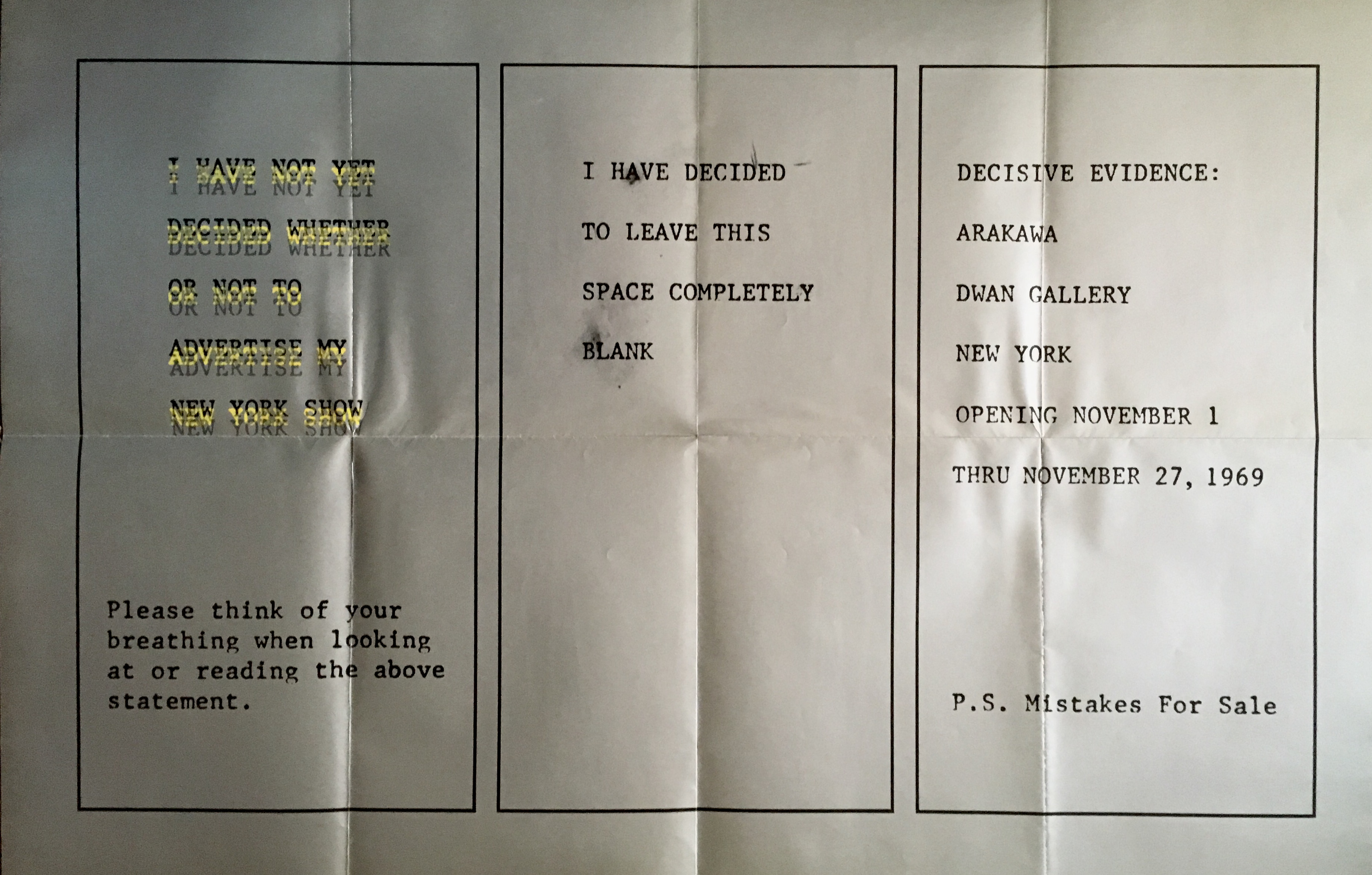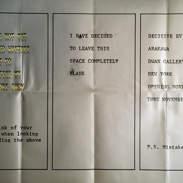 (Shusaku Arakawa). Decisive Evidence: Arakawa. Dwan Gallery, New York, November 1-27, 1969