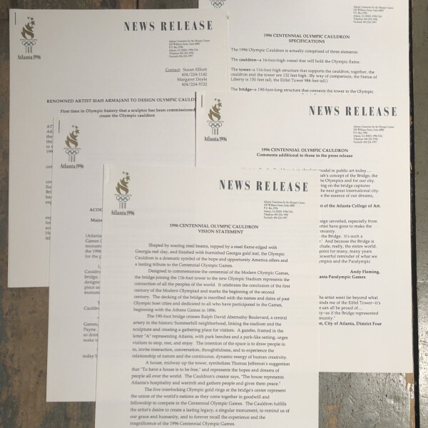 (Siah Armajani / Atlanta 1996 Olympic Cauldron). Press-kit : 9 times in illustrated folder with bottom flaps