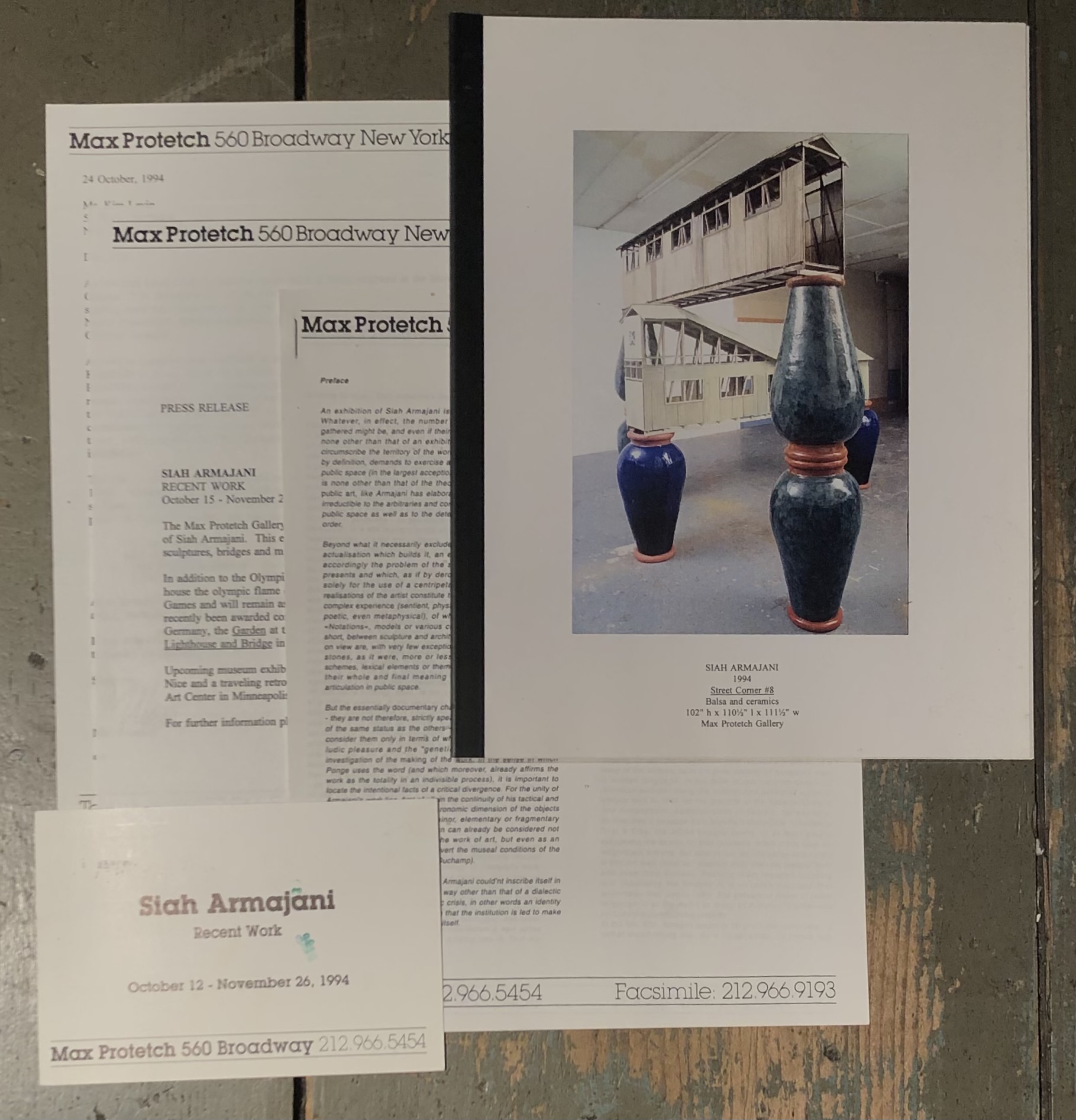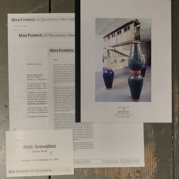 Siah Armajani. Recent work. Max Protetch, New York, October 12 – November 26, 1994