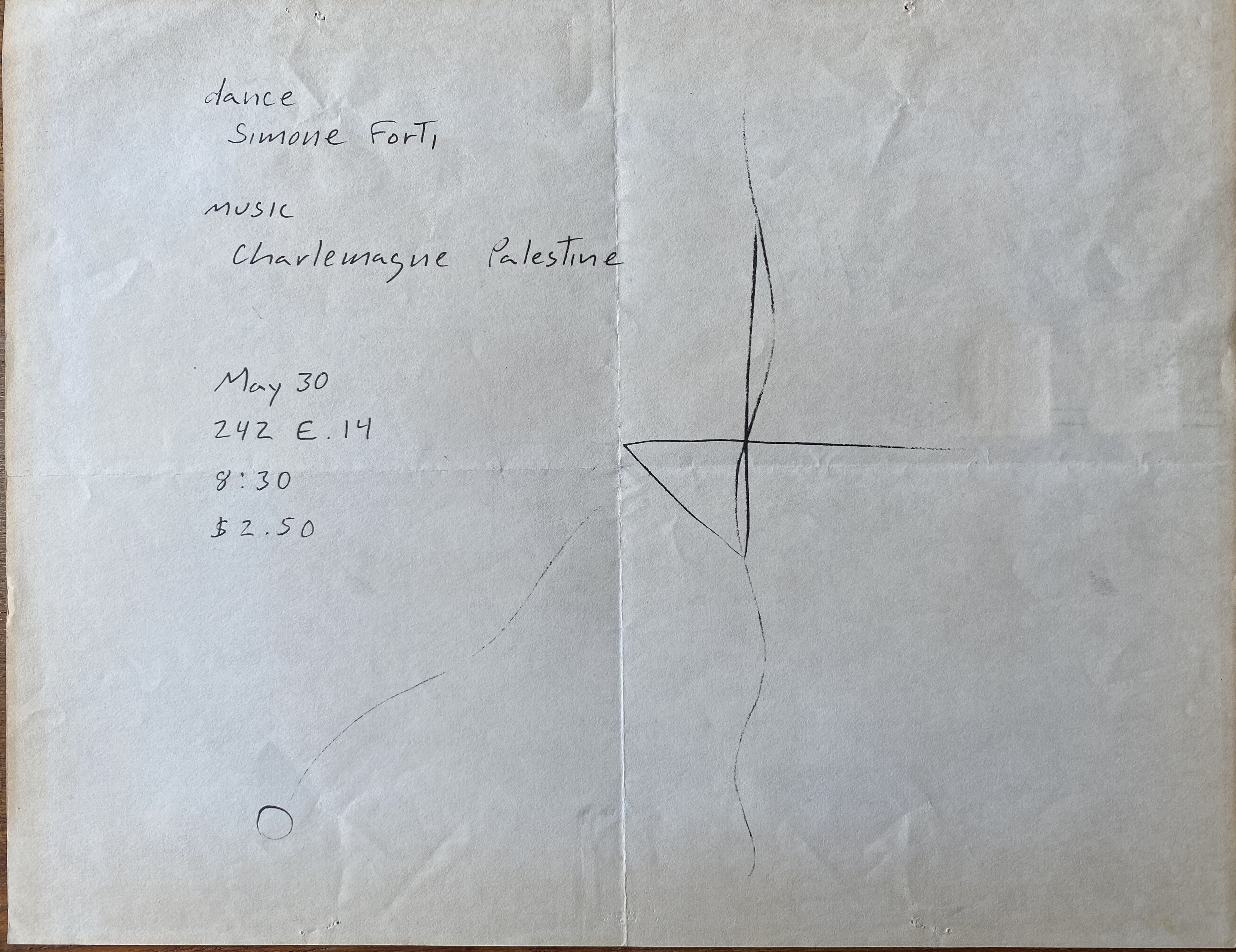 (Simone Forti, Charlemagne Palestine). dance: Simone Forti / music: Charlemagne Palestine. May 30, [1973], 242E. 14 [242 East 14th Street, New York]