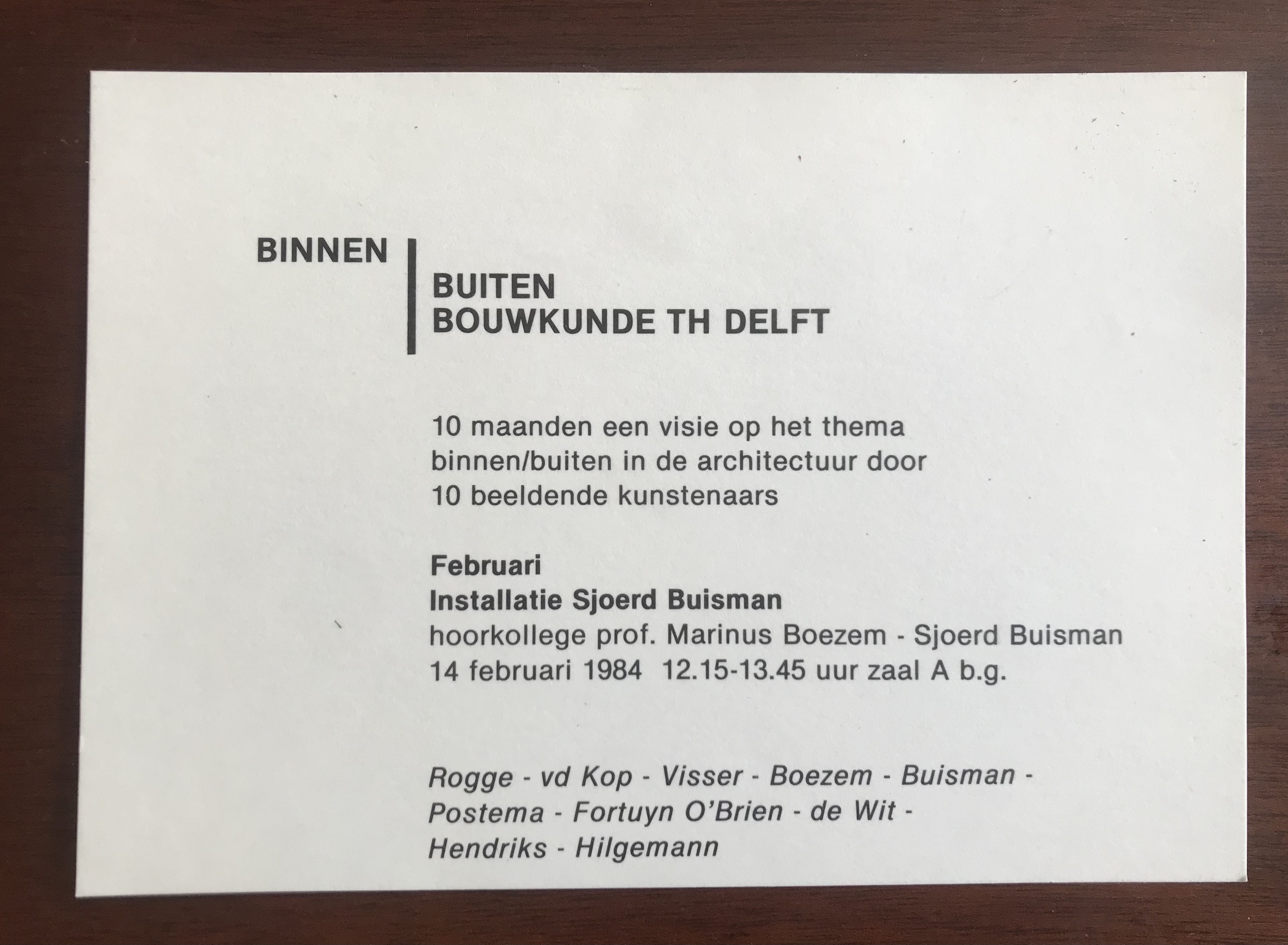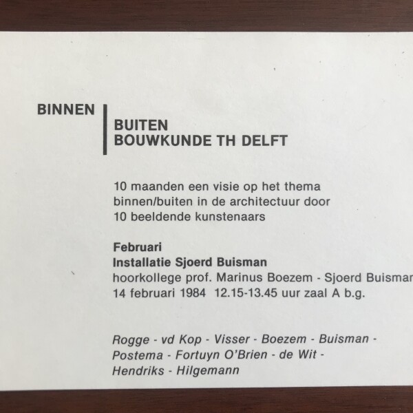 (Sjoerd Buisman). Buinen/buiten: Bouwkunde th Delft. Februari 1984: Installatie Sjoerd Buisman
