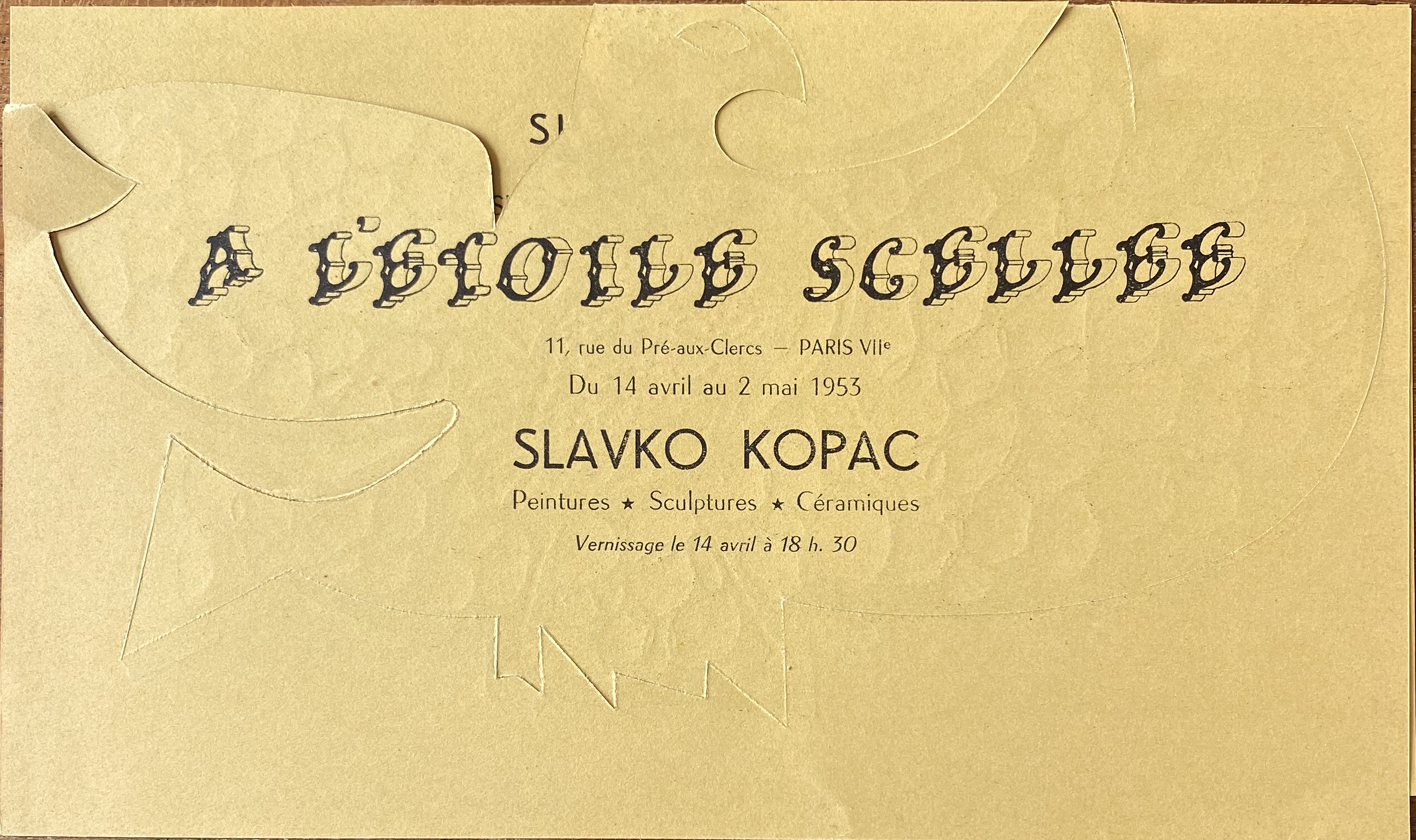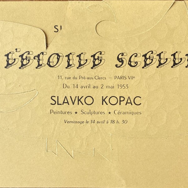 (Slavko Kopač / Benjamin Peret). Slavko Kopac (sic, i.e. Kopač). A l’Etoile Scellee, Paris, 14 avril – 2 mai 1953