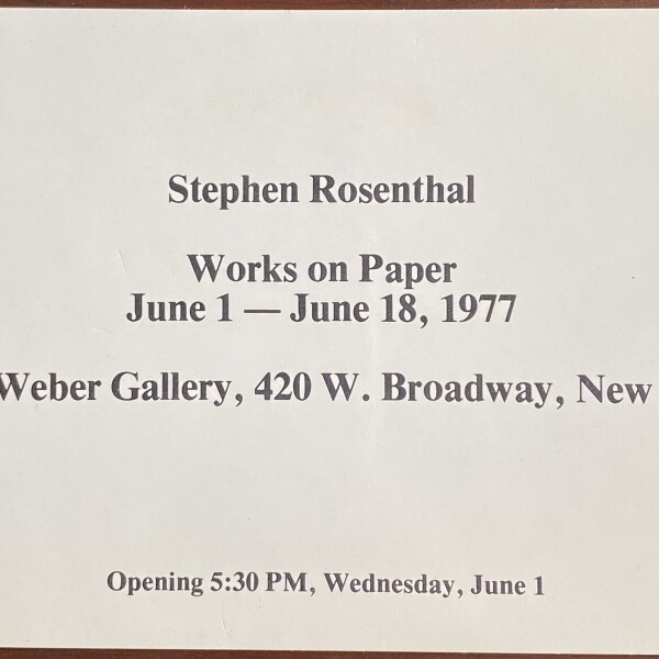 Stephen Rosenthal. Works on Paper. John Weber Gallery, New York, June 1-18, 1977