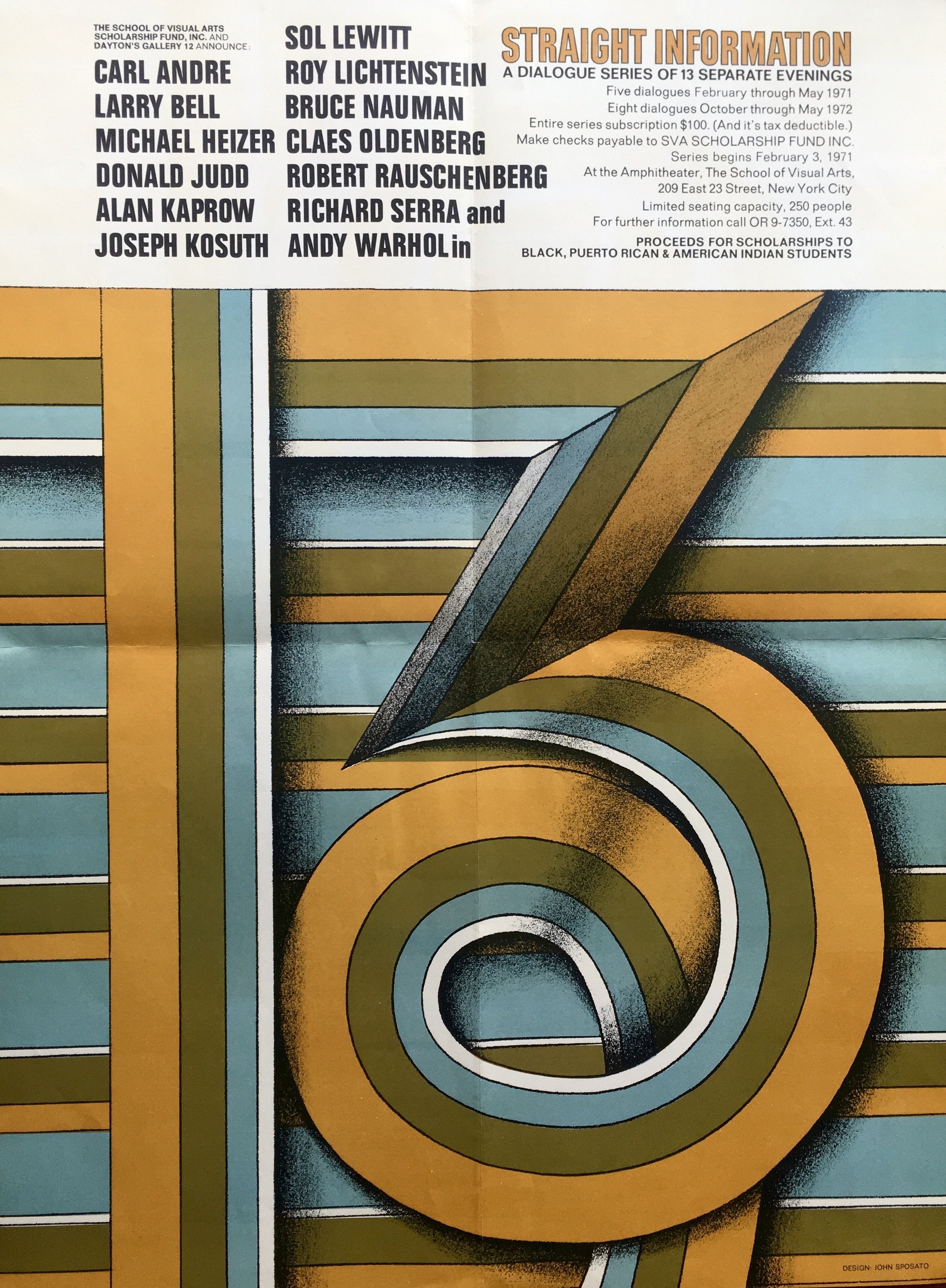 Straight Information. A Dialogue Series of 13 Separate Evenings. School of Visual Art, New York. Five Dialogues, February – May 1971 / Eight dialogues, October [1971] – May 1972
