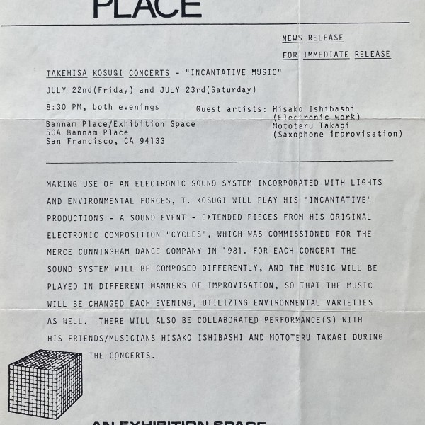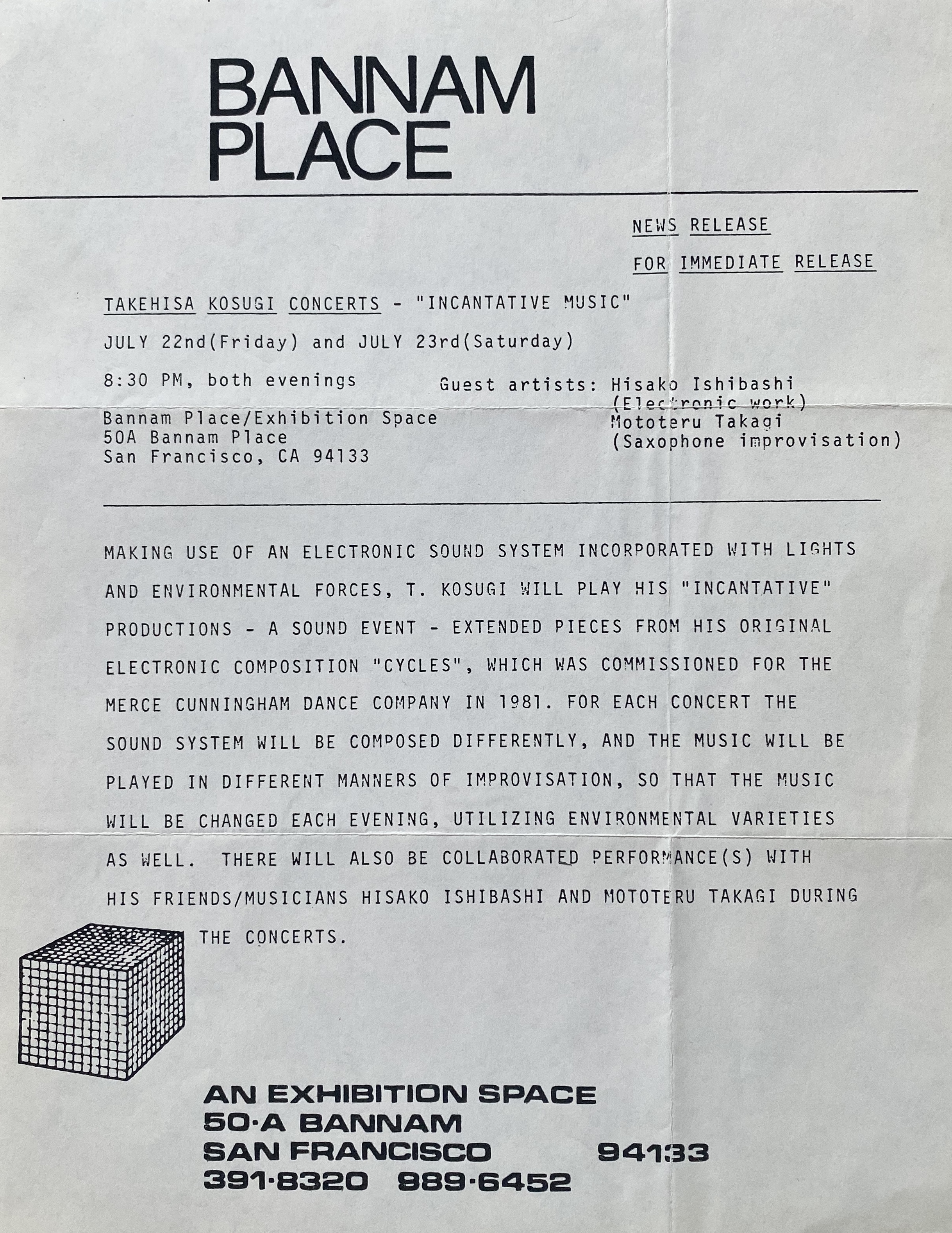 Takehisa Kosugi. “Incantative Music. Bannam Place, San Francisco, July 22, 23, [1983]