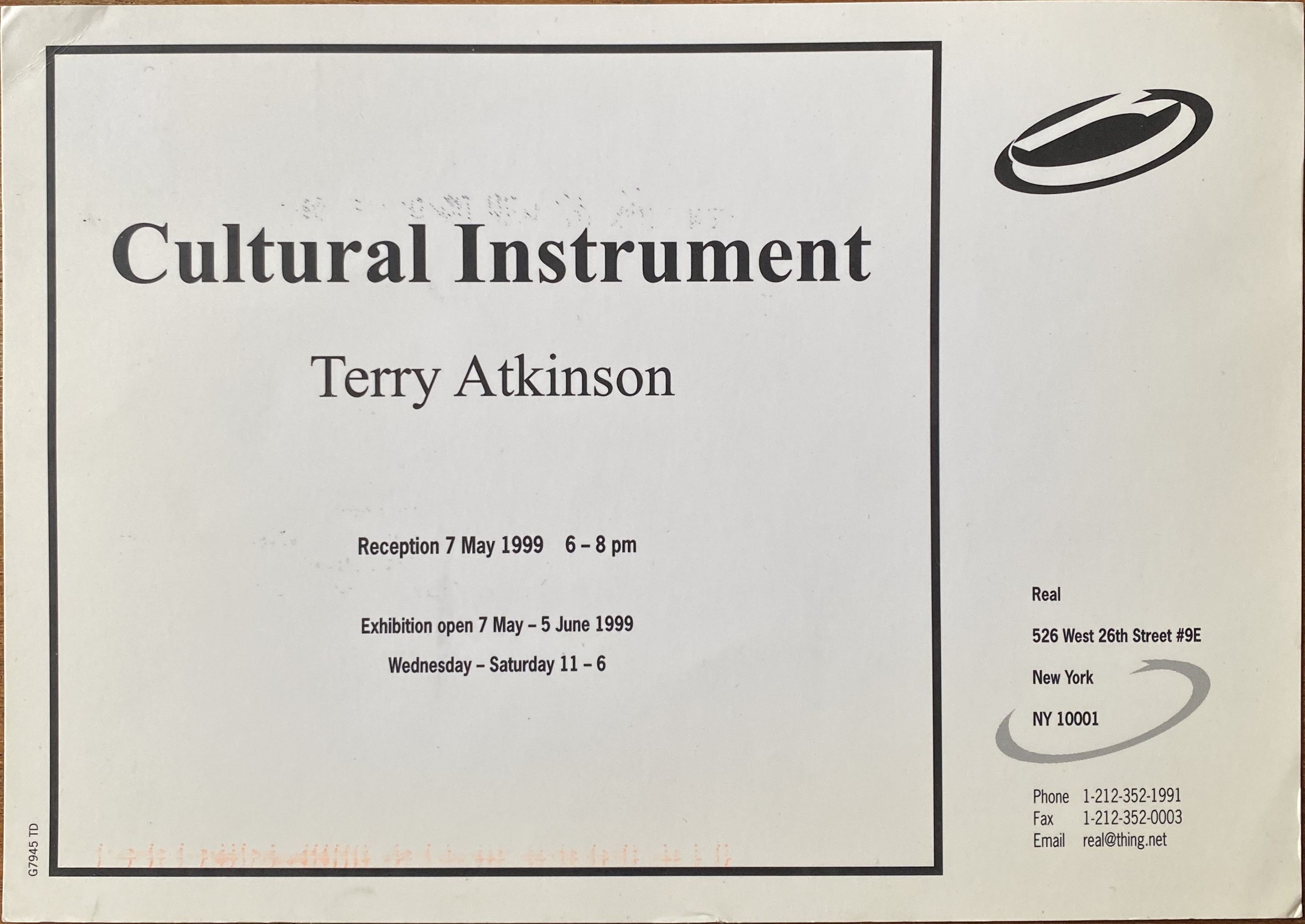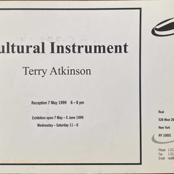 Terry Atkinson. Cultural Instrument. Real, New York, 7 May – 5 June 1999