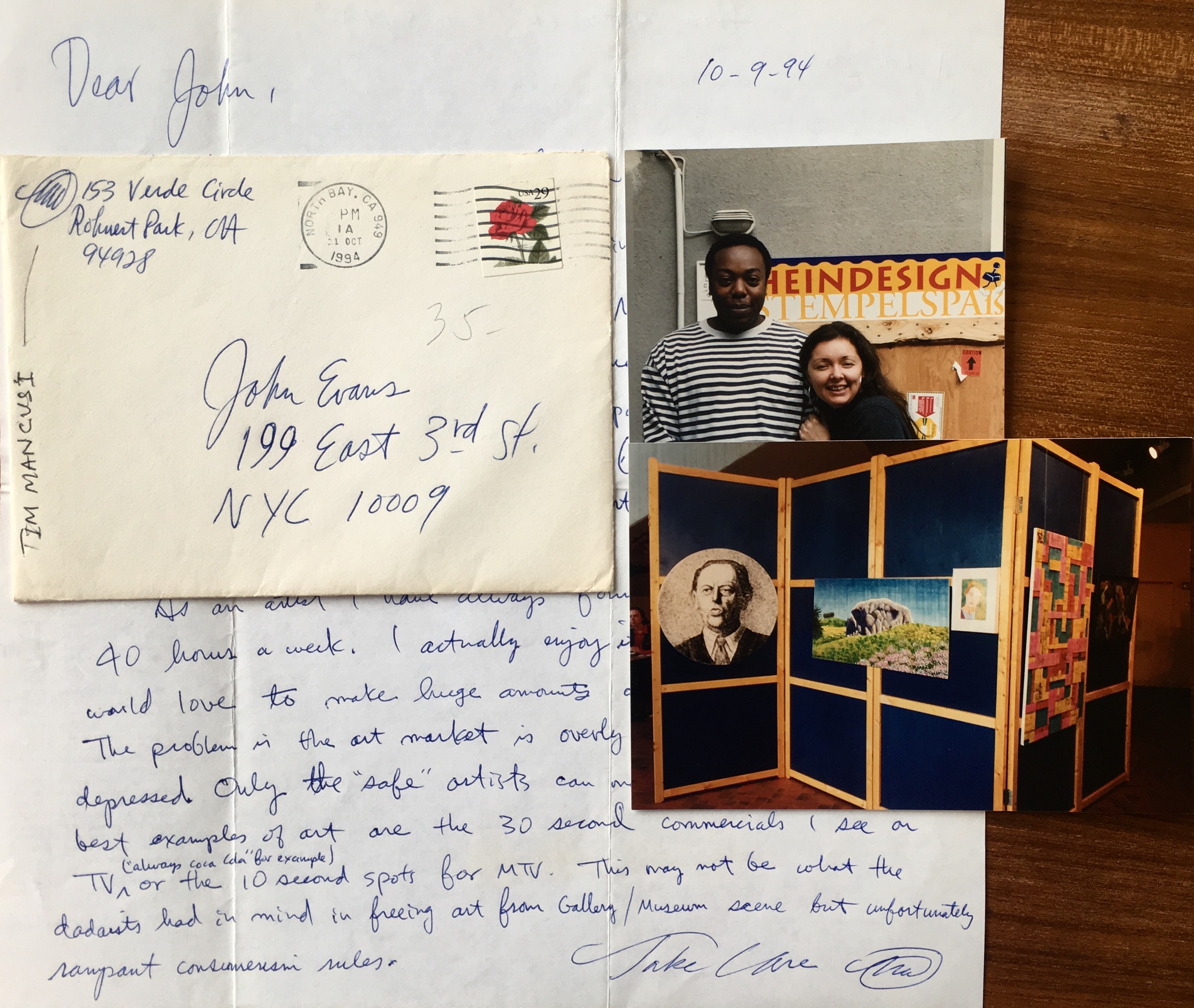 Tim Mancusi. Autograph letter to collage/mail art artist John Evans (1932-2012). Dated 10.9.94. 17 lines in ballpoint pen, signed and initialed