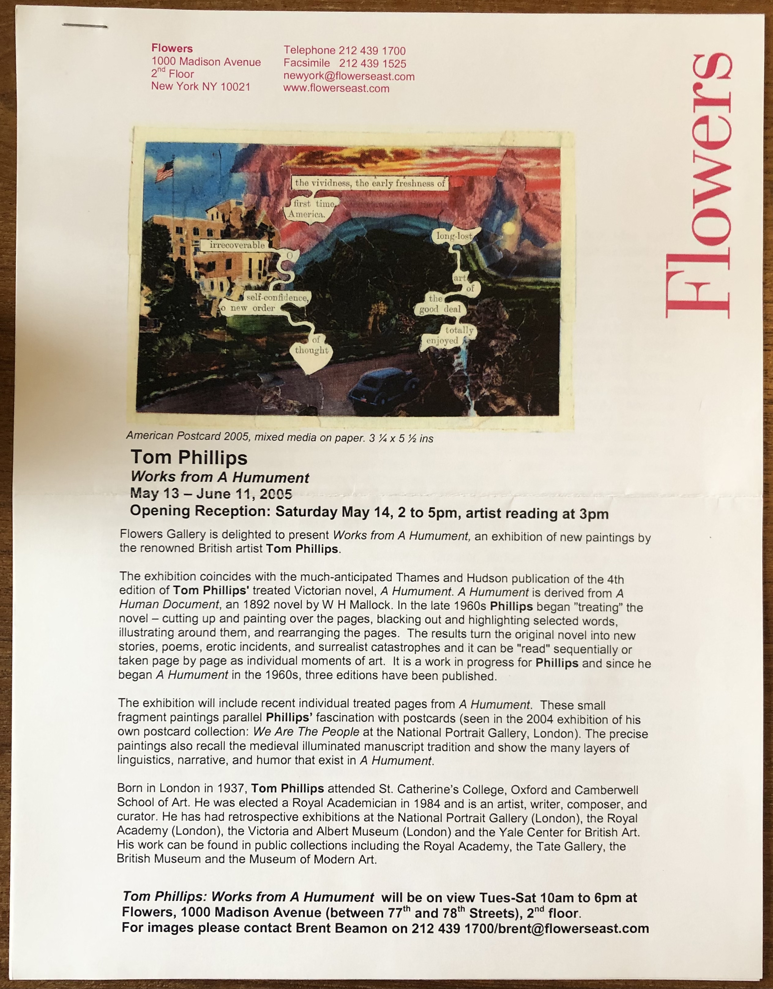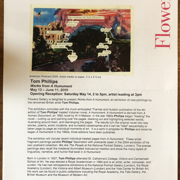 Tom Phillips. Works from A Humument. Flowers, New York, May 13 – June 11, 2005