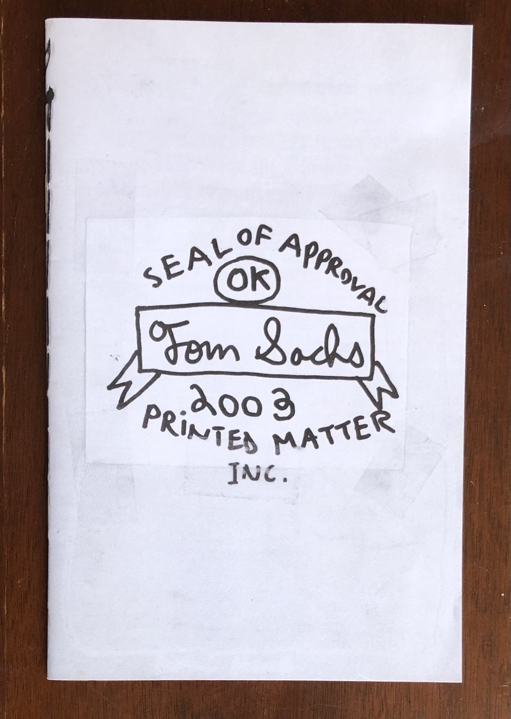 Tom Sachs. Seal of Approval. New York: Printed Matter, 2003.