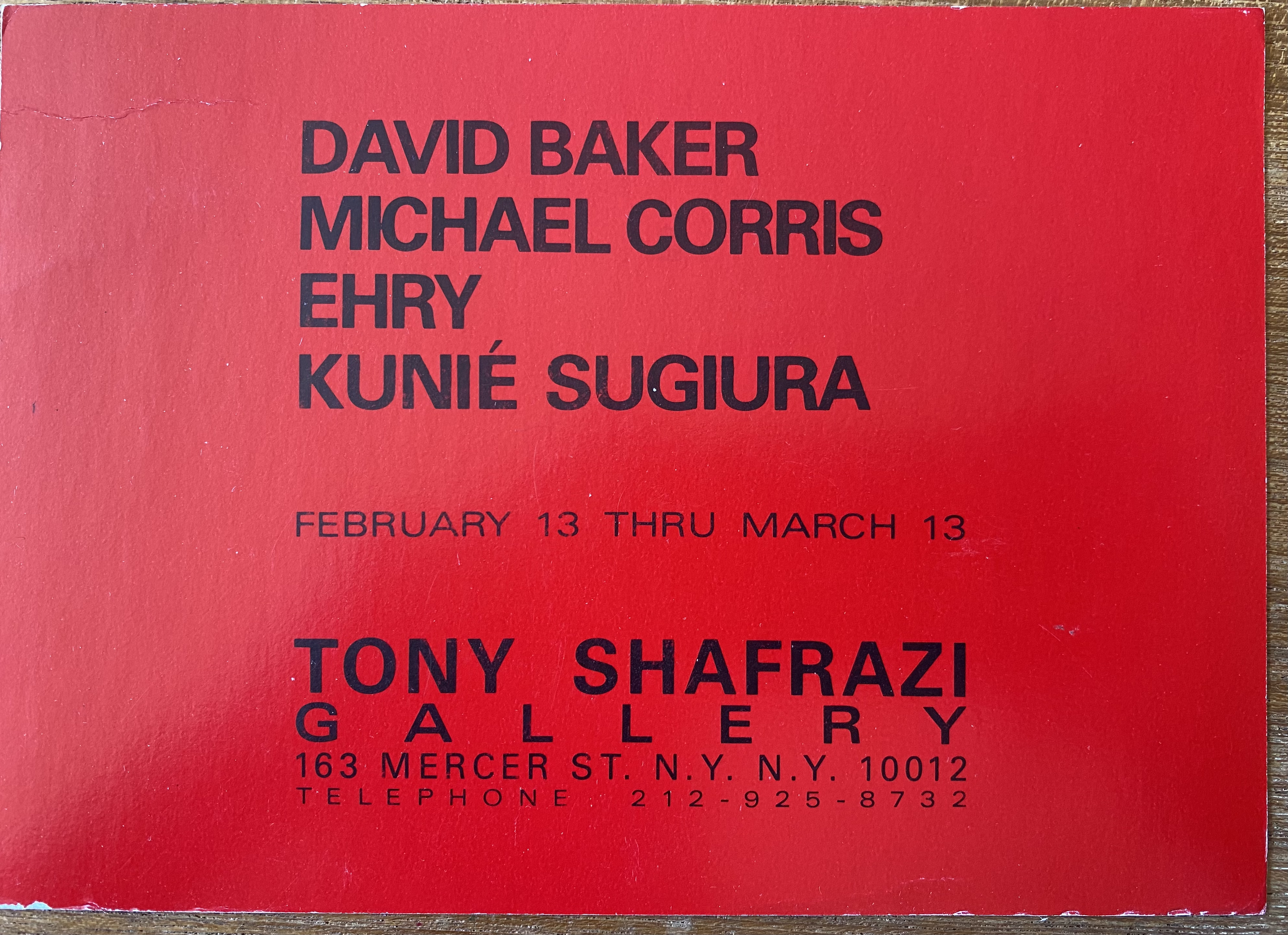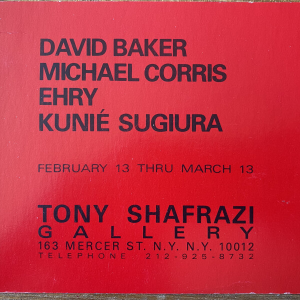 Tony Shafrazi Gallery, New York, February 13 – March 13, [1982]. David Baker, Michael Corissa, Ehry, Kunié Sugiura