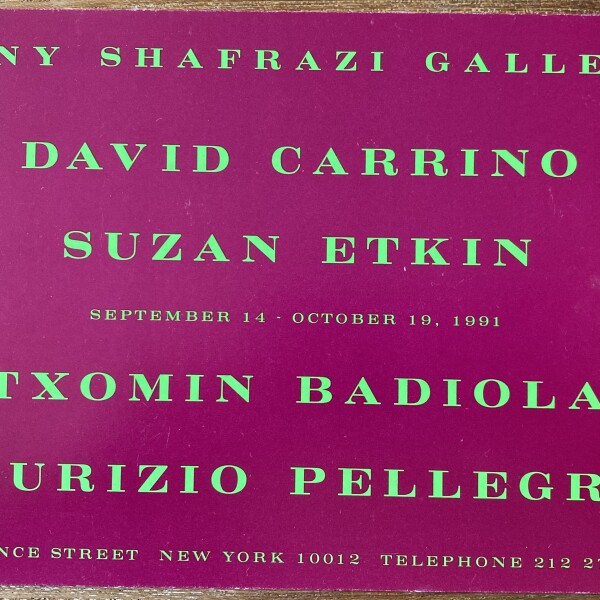 Tony Shafrazi Gallery, New York, September 14 – October 19, 1991. David Carrlino, Suzan Etkin, Txomin Badiola, Maurizio Pellegrin