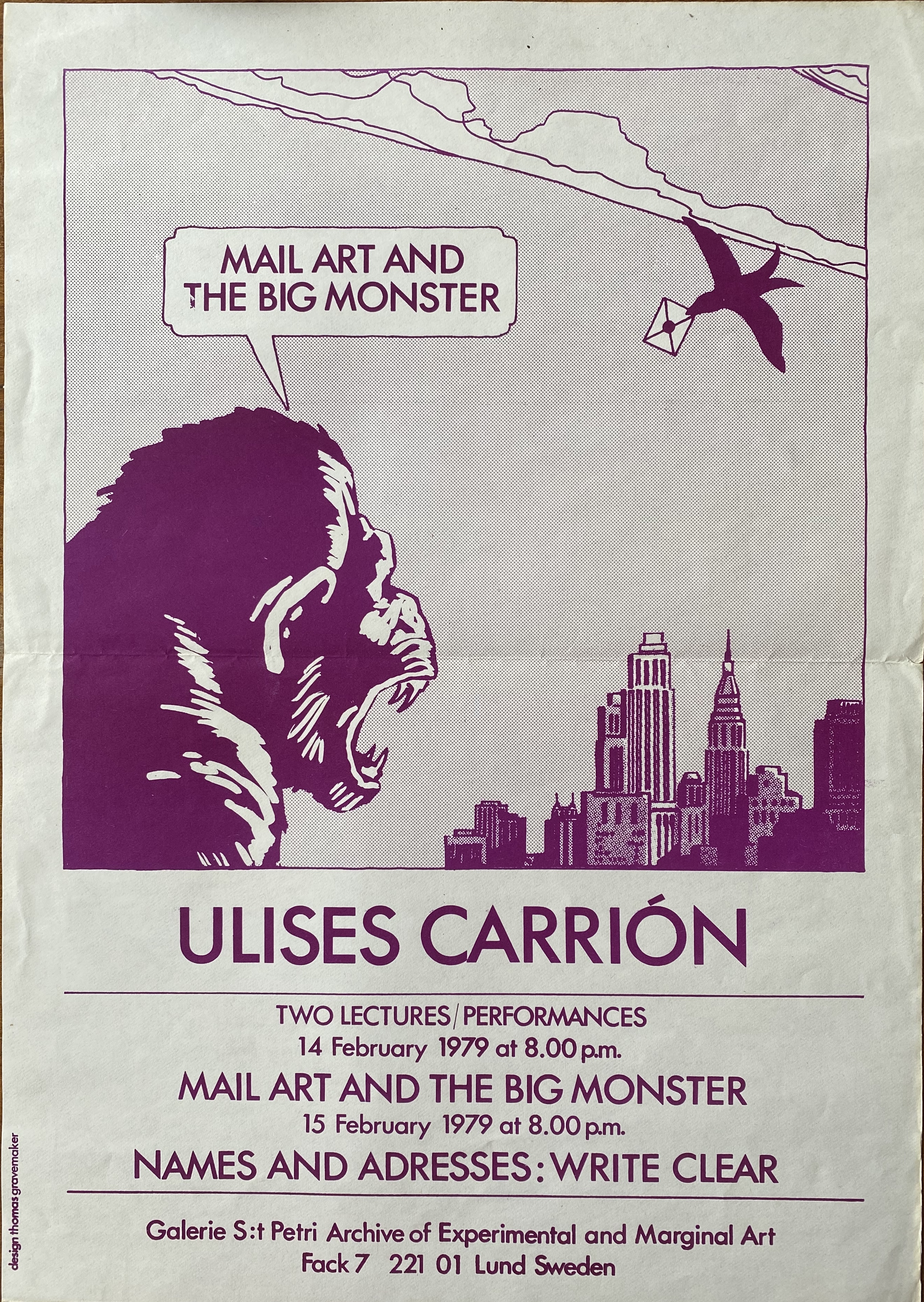 Ulises Carrión. Two Lectures/Performances. Ulises Carrión. Mail Art and the Big Monster / Two Lectures / Performances. Galerie S:t Petri Archive of Experimental and Marginal Art, Lund, 14, 15 February 1979