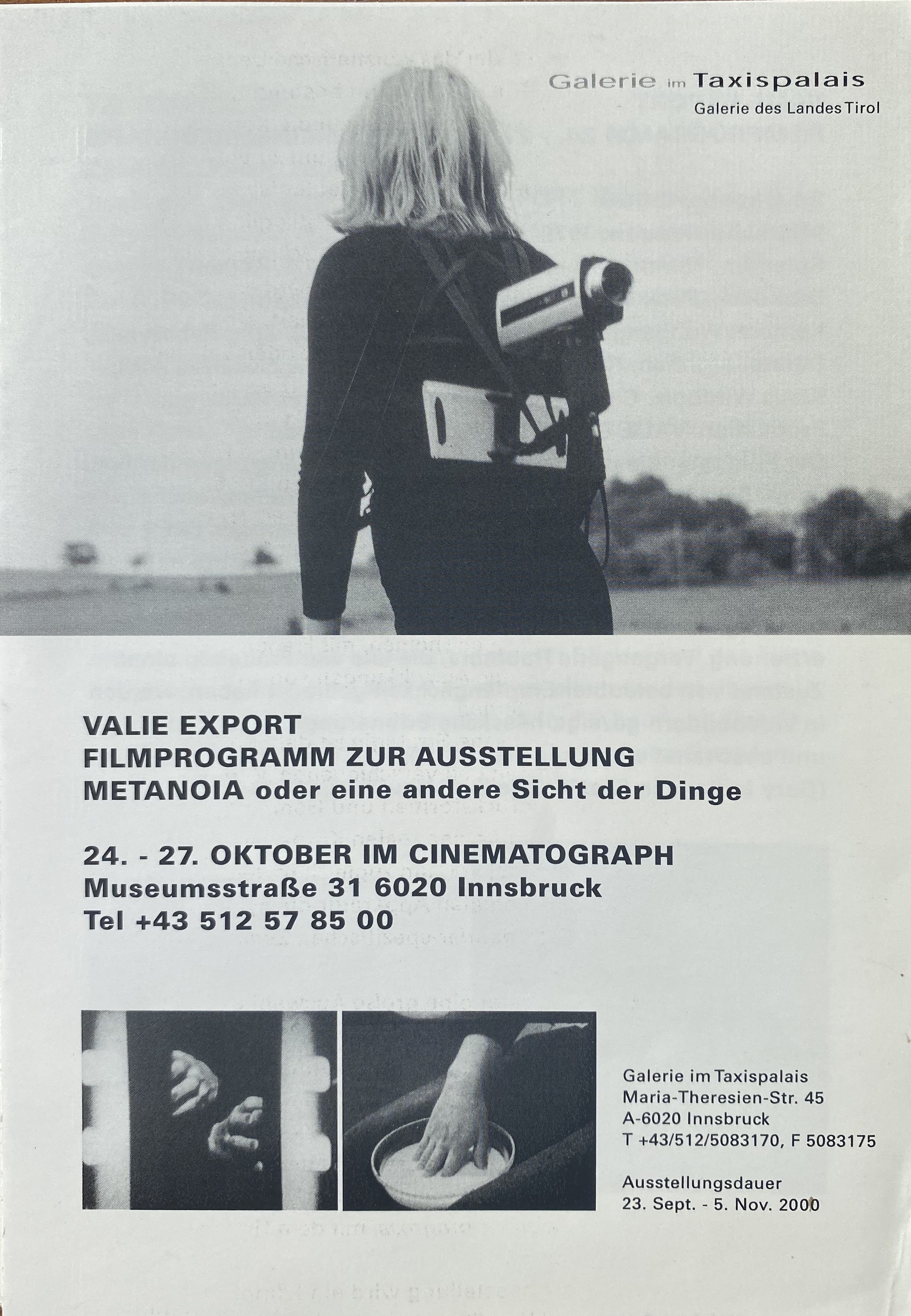 Valie Export. Filmprogramm zur Ausstellung. Metanoia, oder eine andere Sicht der Dinge. Cinematograph, Innsbruck, 24.-27. Oktober 2000