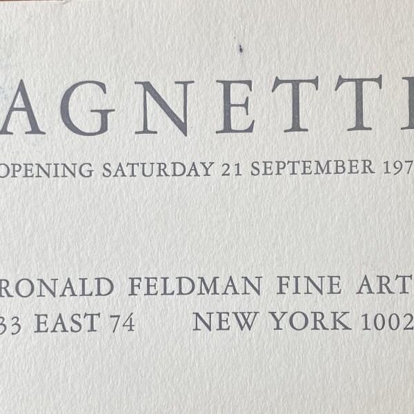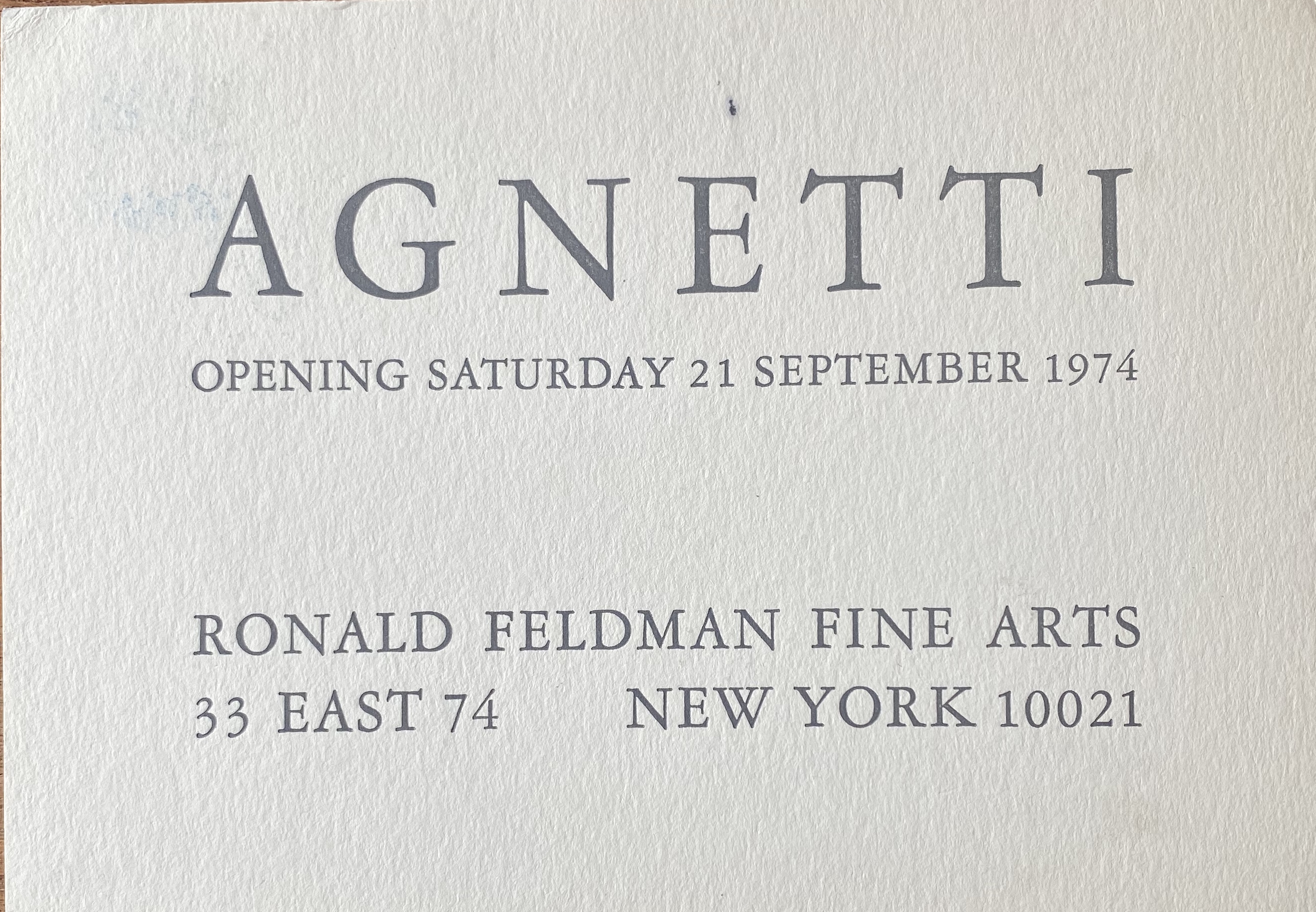 (Vincenzo Agnetti). Agnetti. Ronald Feldman Fine Arts, New York. Opening 21 September 1974