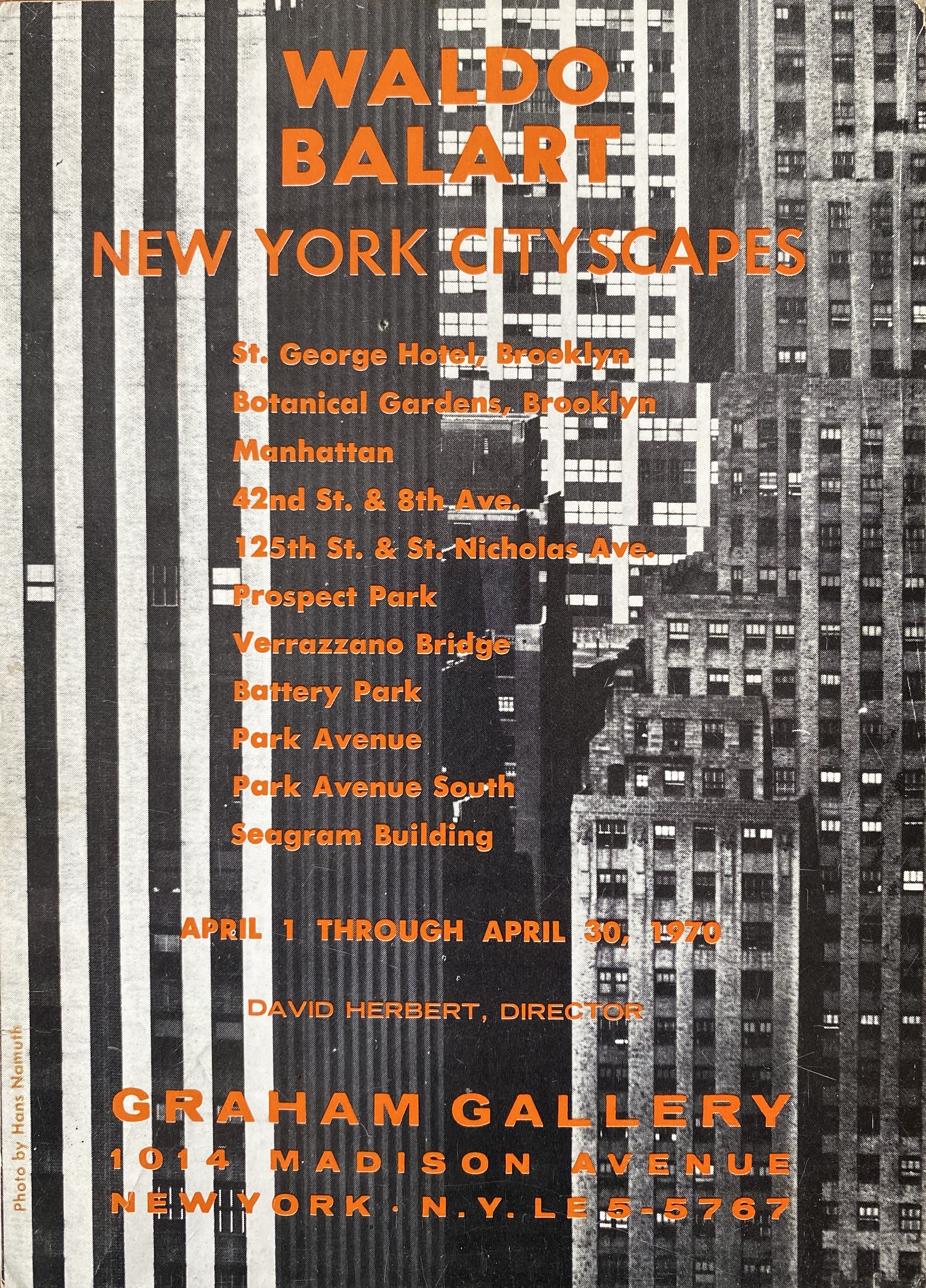 Waldo Balart. New York Cityscapes. Graham Gallery, New York, April 1-30, 1970