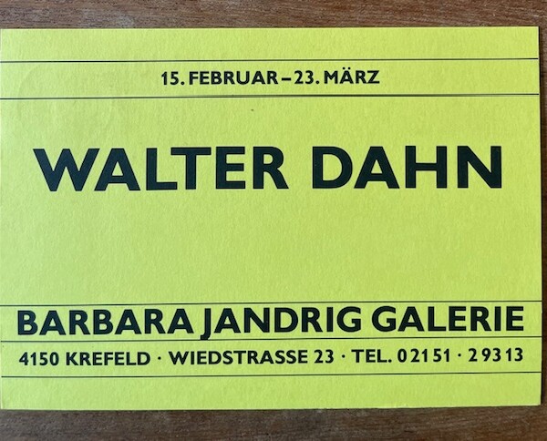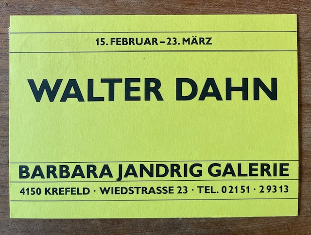 (Walter Dahn). Walter Dahn. Barbara Jandrig Galerie, Krefeld, 15. Februar – 13. März 1985