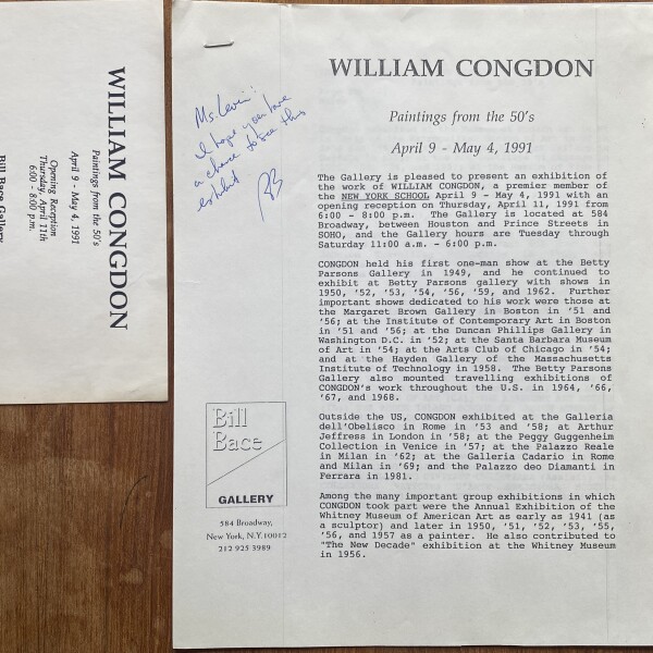 – With brief message from Bill Bace to a contemporary art critic, initialed in upper left