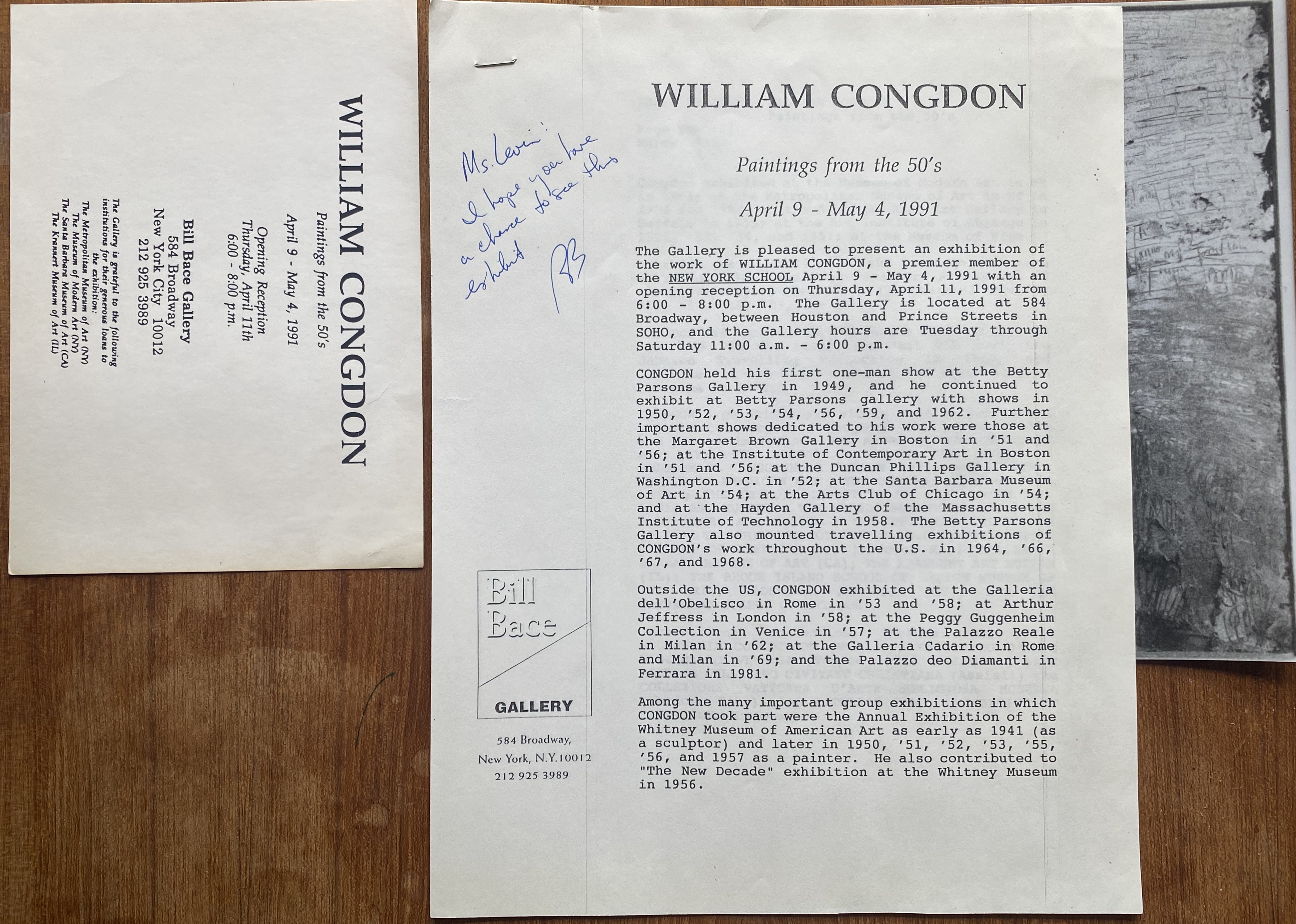 William Congdon. Paintings from the 50’s. Bill Bace Gallery, New York, April 9 – May 4, 1991