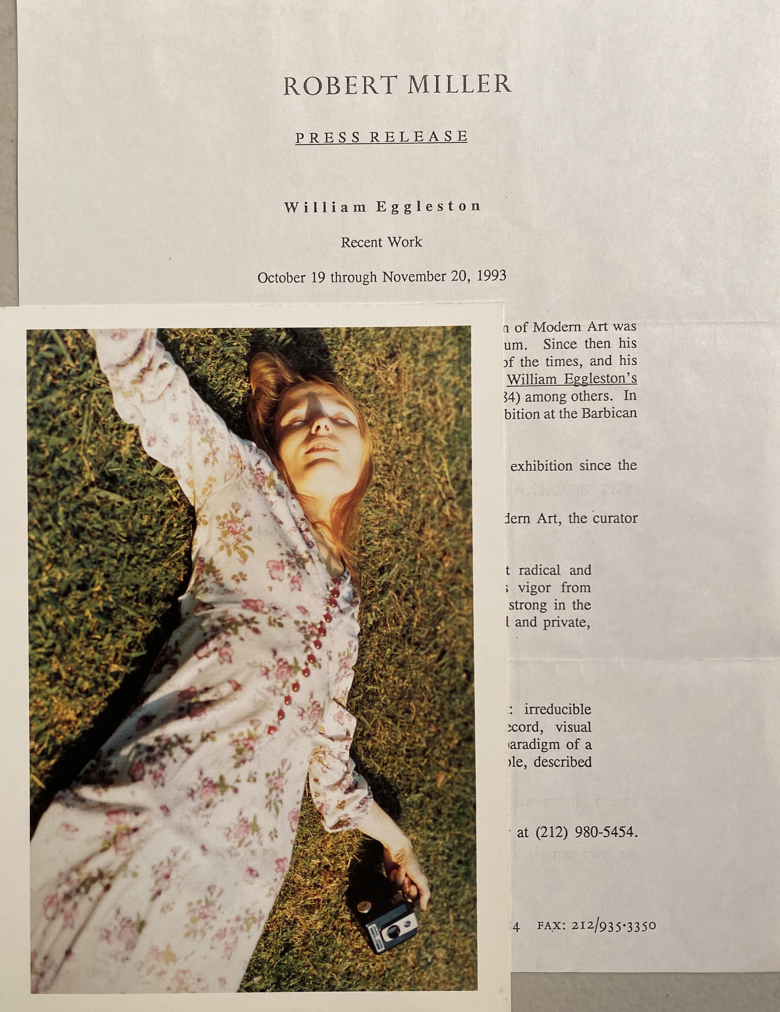 (William Eggleston). William Eggleston. Robert Miller Gallery, New York, October 19, 1993