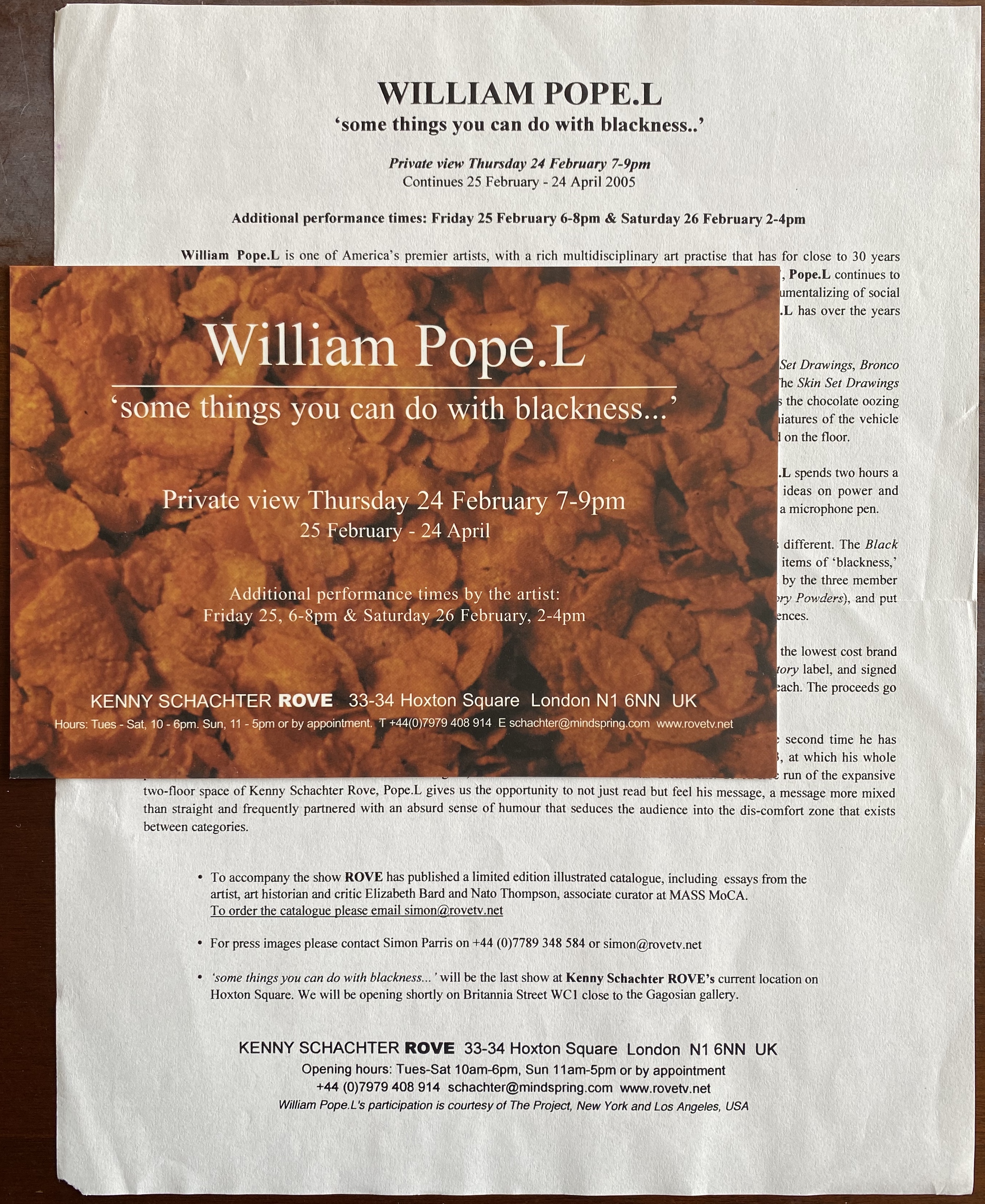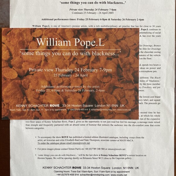William Pope.L. “some things you can do with blackness…” Kenny Schachter Rove, London, 24 25 February – 24 April, [2005]