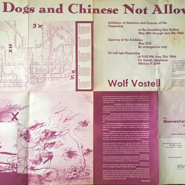 Wolf Vostell. Dogs and Chinese Not Allowed. The Something Else Gallery, New York, May 28 – June 8, 1966. Opening of the exhibition May 27, by arrangement only. Dé-coll / age-Happening May 21, 1966