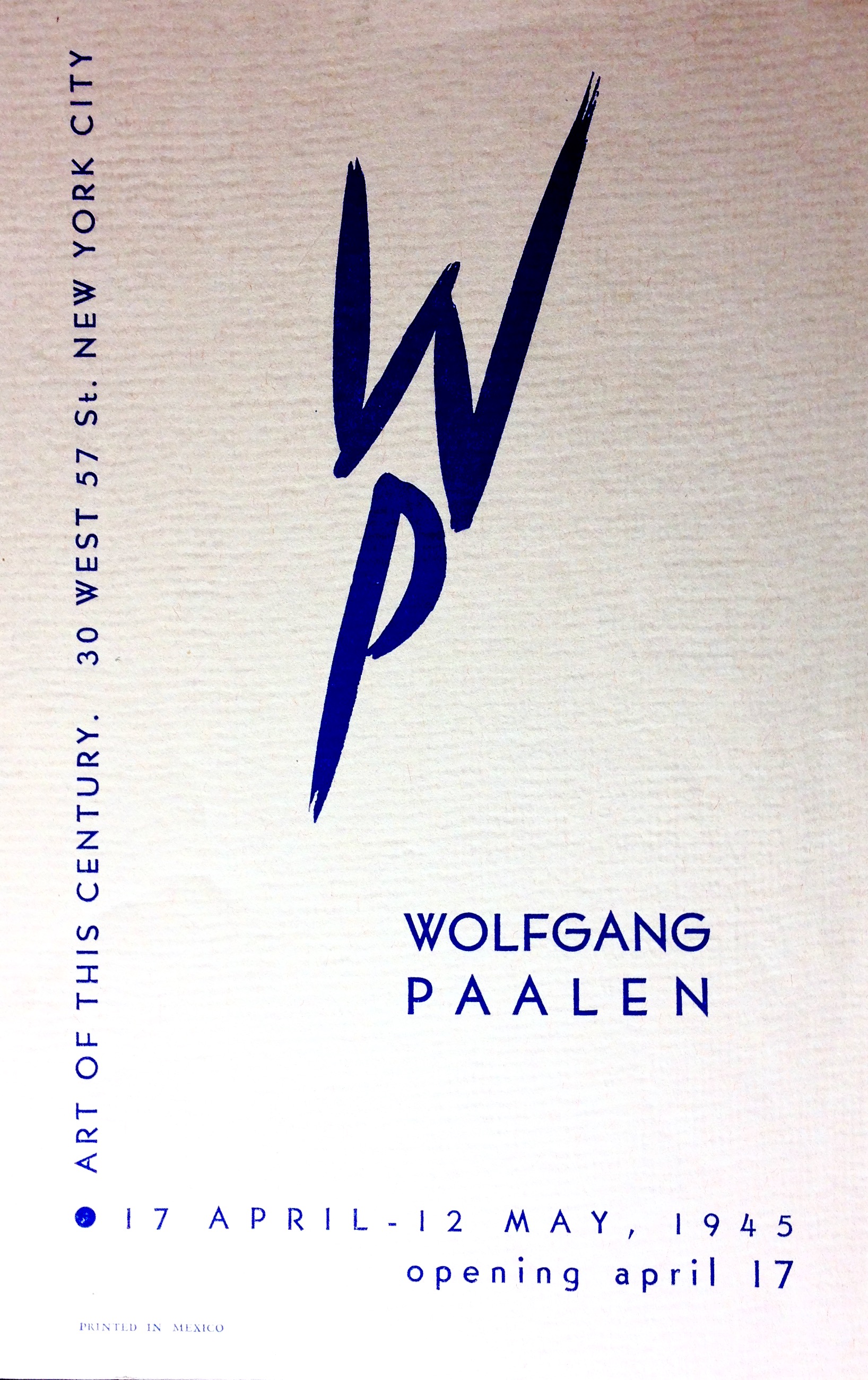 Wolfgang Paalen. Wolfgang Paalen. Art of this Century, New York, 17 April-12 May 1945.