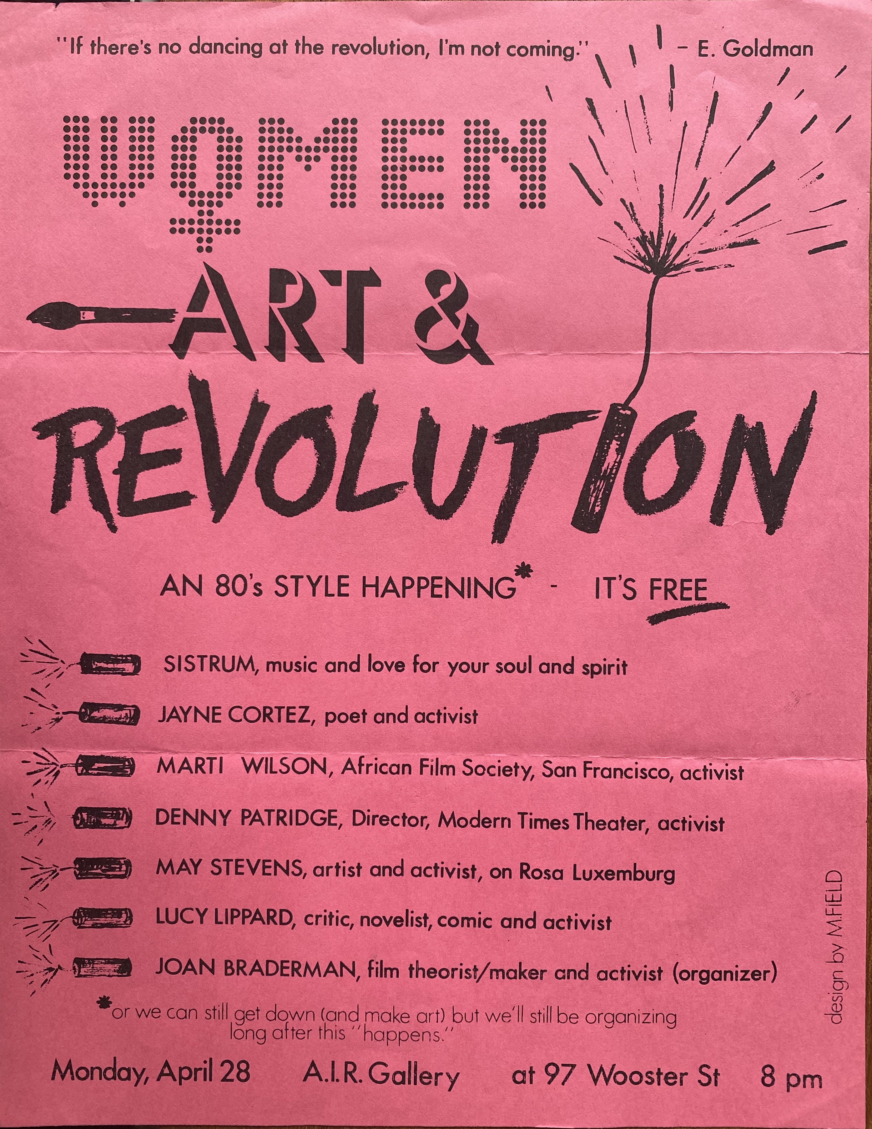 Women, Art & Revolution. A.I.R. Gallery, New York, April 28, [1980]