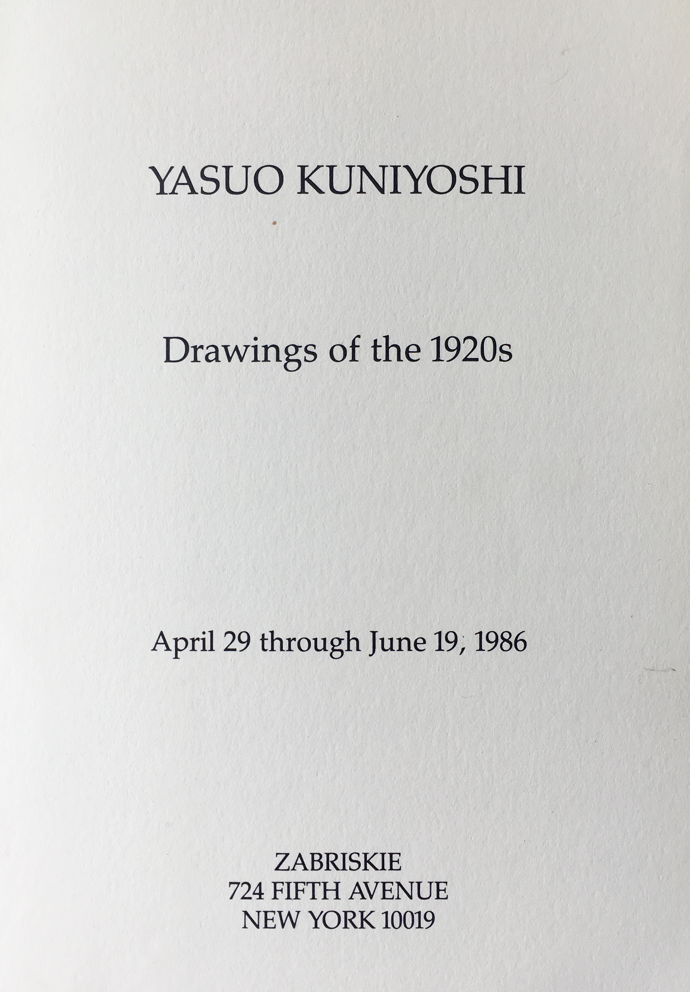 Yasuo Kuniyoshi. Drawings of the 1920s. Zabriskie, New York, April 29 – June 19, 1986