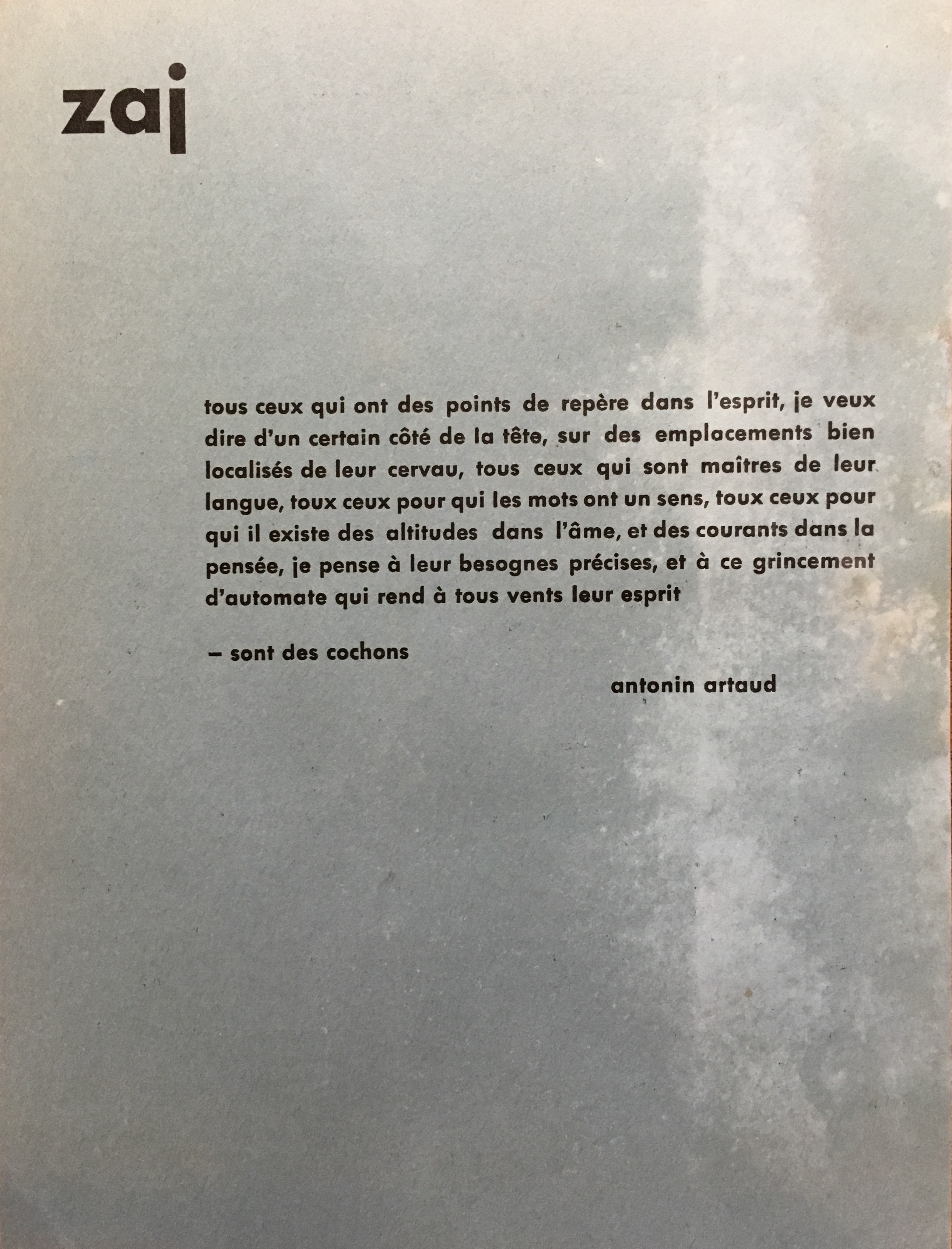 On verso: Excerpt (in French) from Artaud’s Le pèse-nerfs