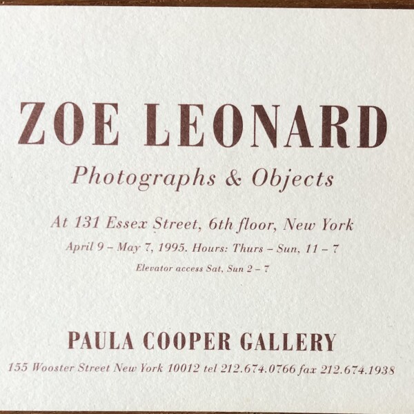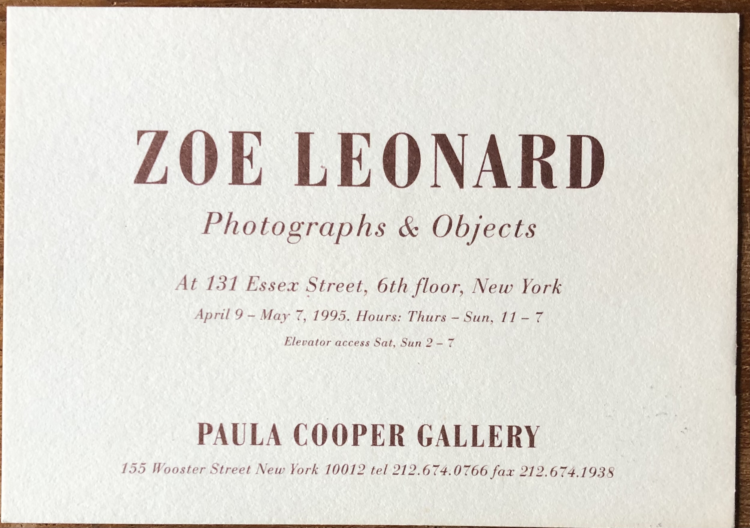 Zoe Leonard. Photographs & Objects. Paula Cooper Gallery, New York, April 9 – May 7, 1995
